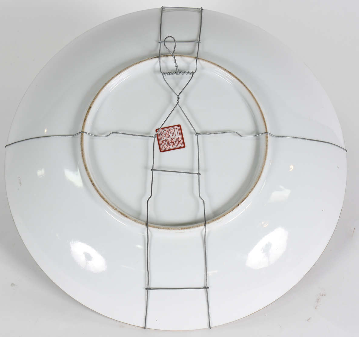 Floreira de parede de cerâmica com flores policromada, forma de leque.