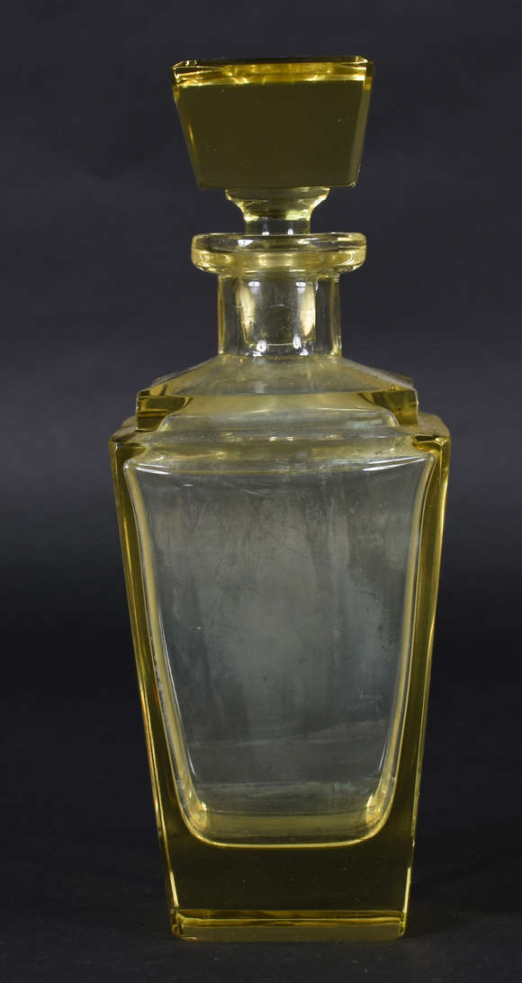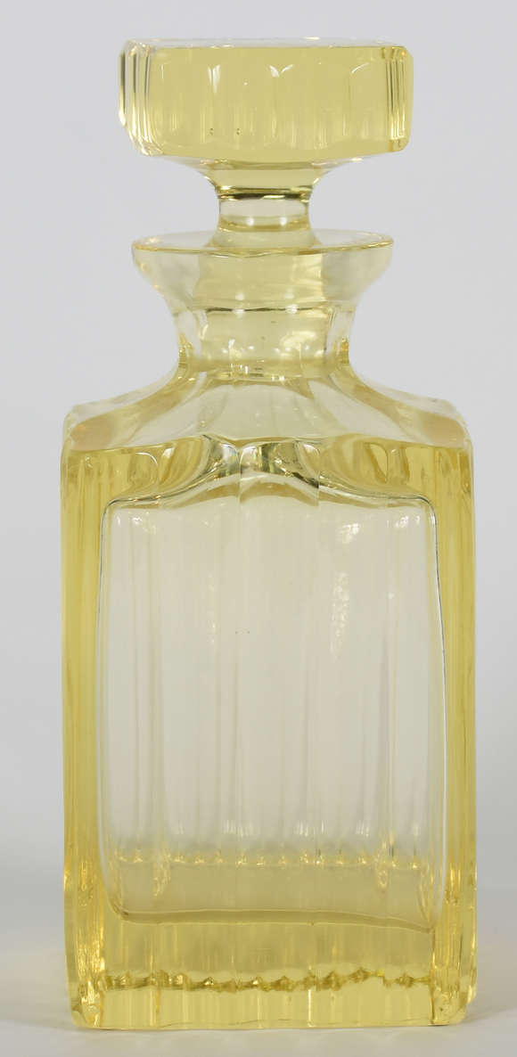 Garrafa feitio quadrangular em bloco de cristal europeu na cor amarela.