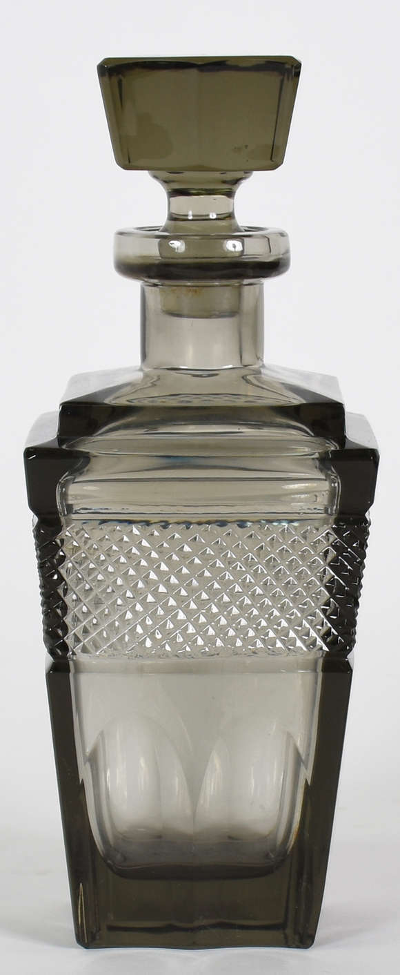 Garrafa de cristal europeu na cor fumê , base facetada.