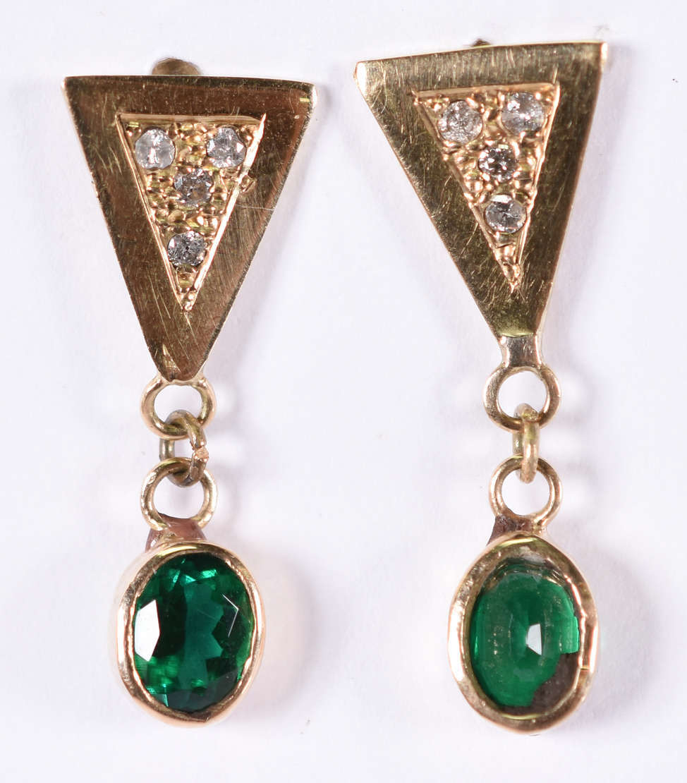 Par de brincos de ouro 18 K ovais com brilhantes ( Por questão de segurança a peça não se encontra na loja)