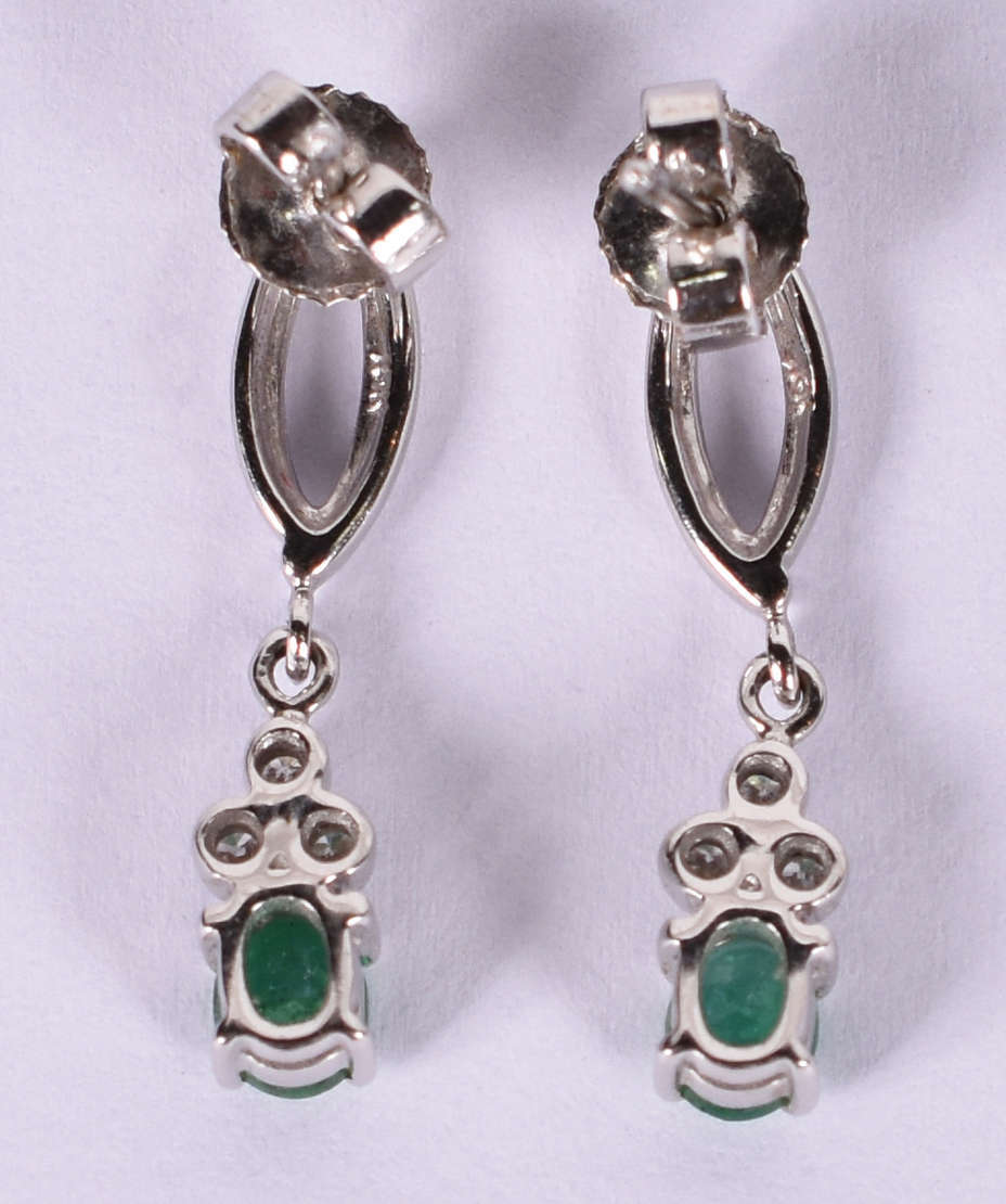 Par de brincos de ouro 18 K com 2 esmeraldas e brilhantes ( Por questão de segurança a peça não se encontra na loja)