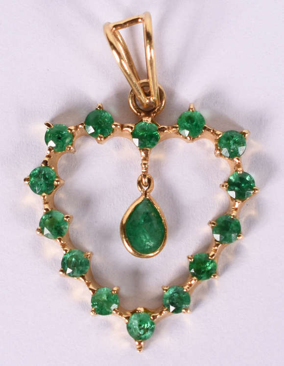 pingente de ouro amarelo com 15 esmeraldas ( Por questão de segurança a peça não se encontra na loja )
