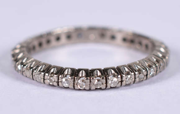 Aliança completa de ouro branco com 23 brilhantes de aproximadamente 1,20 ct . Aro 16 ( Por questão de segurança a ...