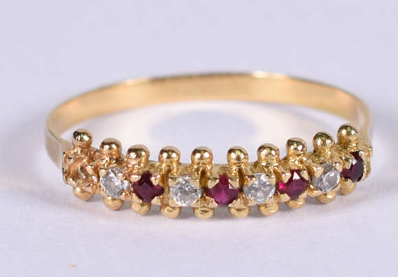 Meia aliança com brilhantes e rubis . Aro 16 ( Por questão de segurança a peça não se encontra na loja)