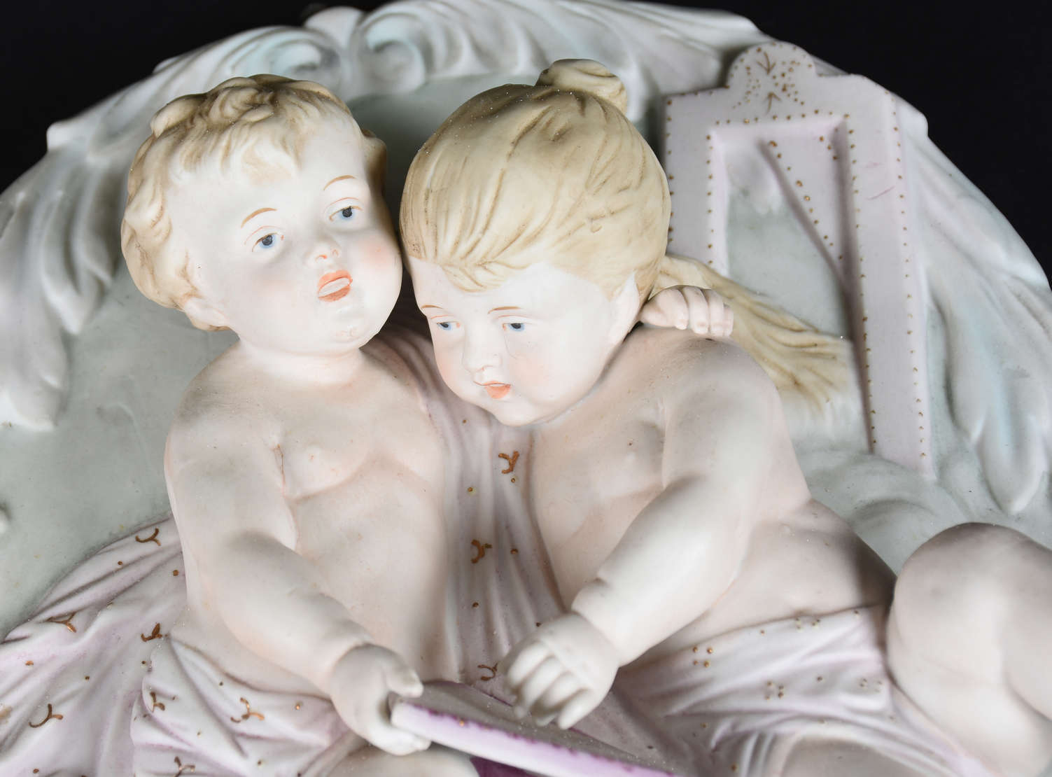 Cinco imagens de anjos com vestimenta em madrepérola