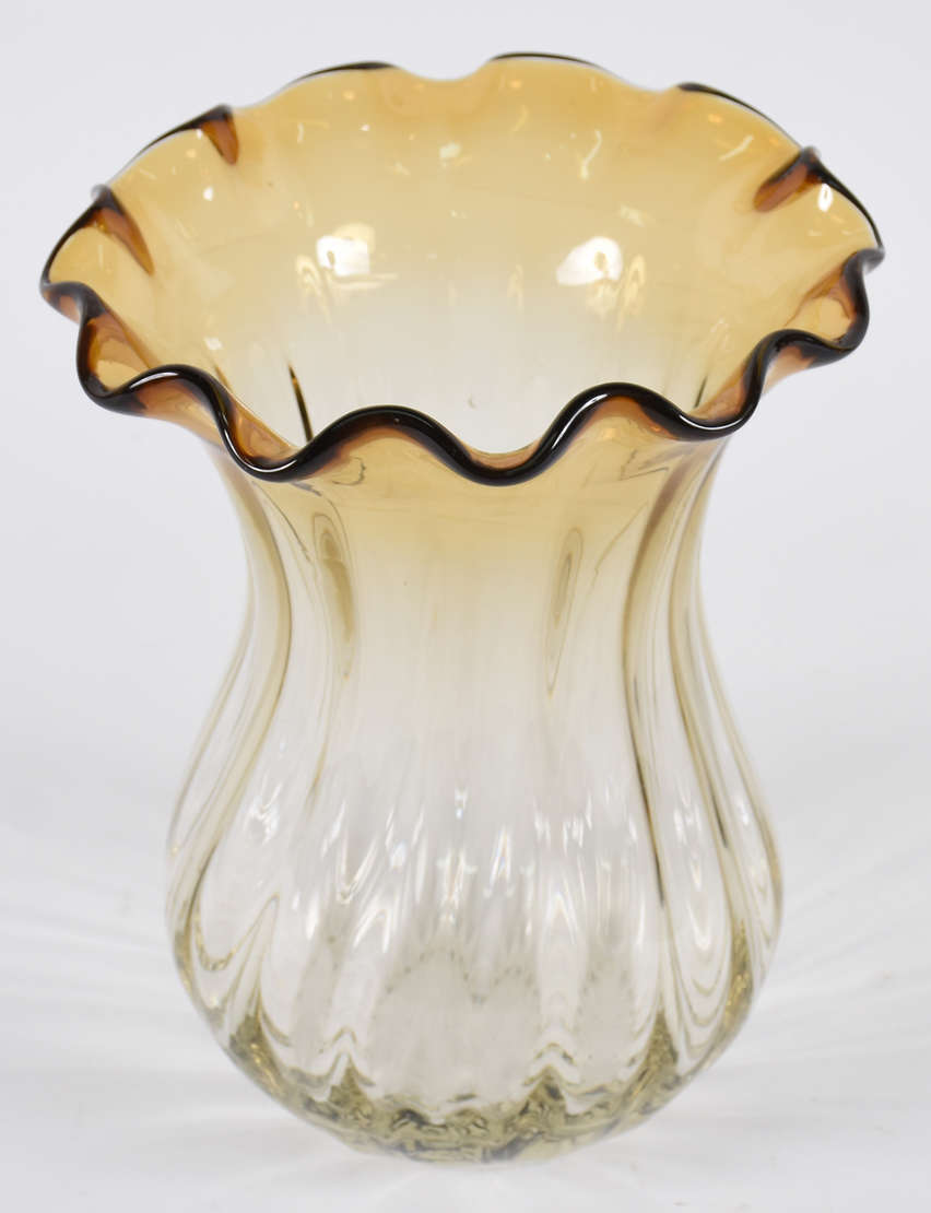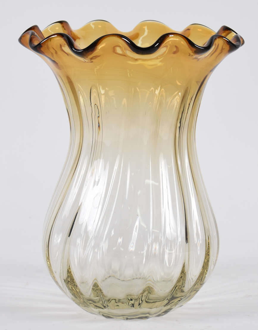 Vaso de cristal europeu lapidado em frisos ( pequeno lascado na borda)
