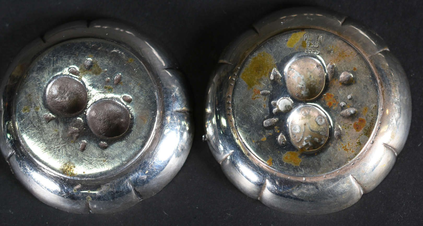 Três peças sendo ,porta cartão de prata , porta retrato duplo 3x4 e mini espelho ( 6 cm de altura)