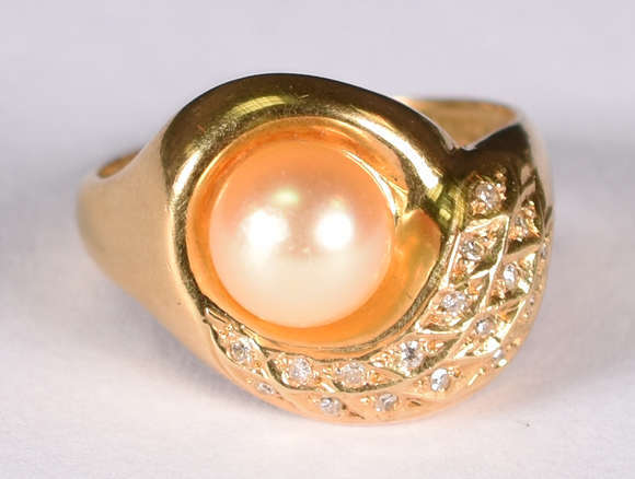 Anel de ouro 18 com pérola e brilhante . Aro 20( Por questão de segurança a peça não se encontra na loja )