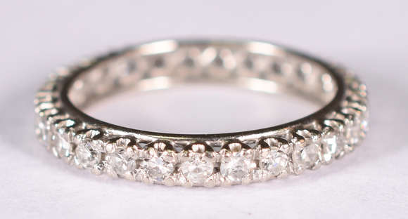 Meia aliança de ouro 18 com brilhantes . Aro 15 ( Por questão de segurança a peça não se encontra na loja )