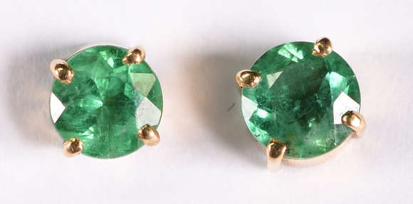 Par de brincos de ouro amarelo com 2 pedras verde ( Por questão de segurança a peça não se encontra na loja )