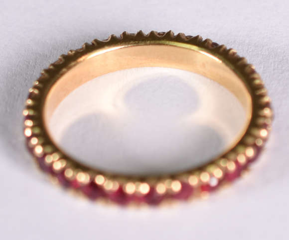 Aliança completa de ouro amarelo com 27 rubis. Aro 17 ( Por questão de segurança a peça não se encontra na loja )