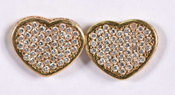 Par de brincos de ouro tipo coração com 60 brilhantes ( Por questão de segurança a peça não se encontra na loja )