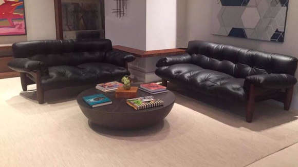 Mesa redonda "ALEX" de jacarandá, pertenceu a suite presidencial do antigo Hotel Nacional em São Conrado, RJ.
