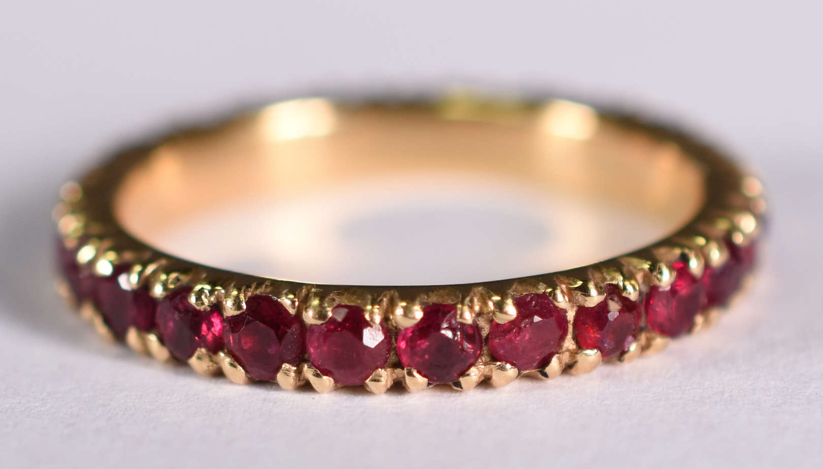 Meia aliança de ouro 18 com rubis e brilhantes . Aro 16. ( Por questão de segurança a peça não se encontra na loja )