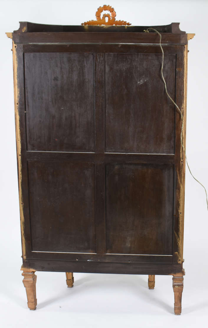 "Secrétaire à abattant" de madeira nobre, parte interna com gavetinha e porta central com trabalhos em marqueterie, p...