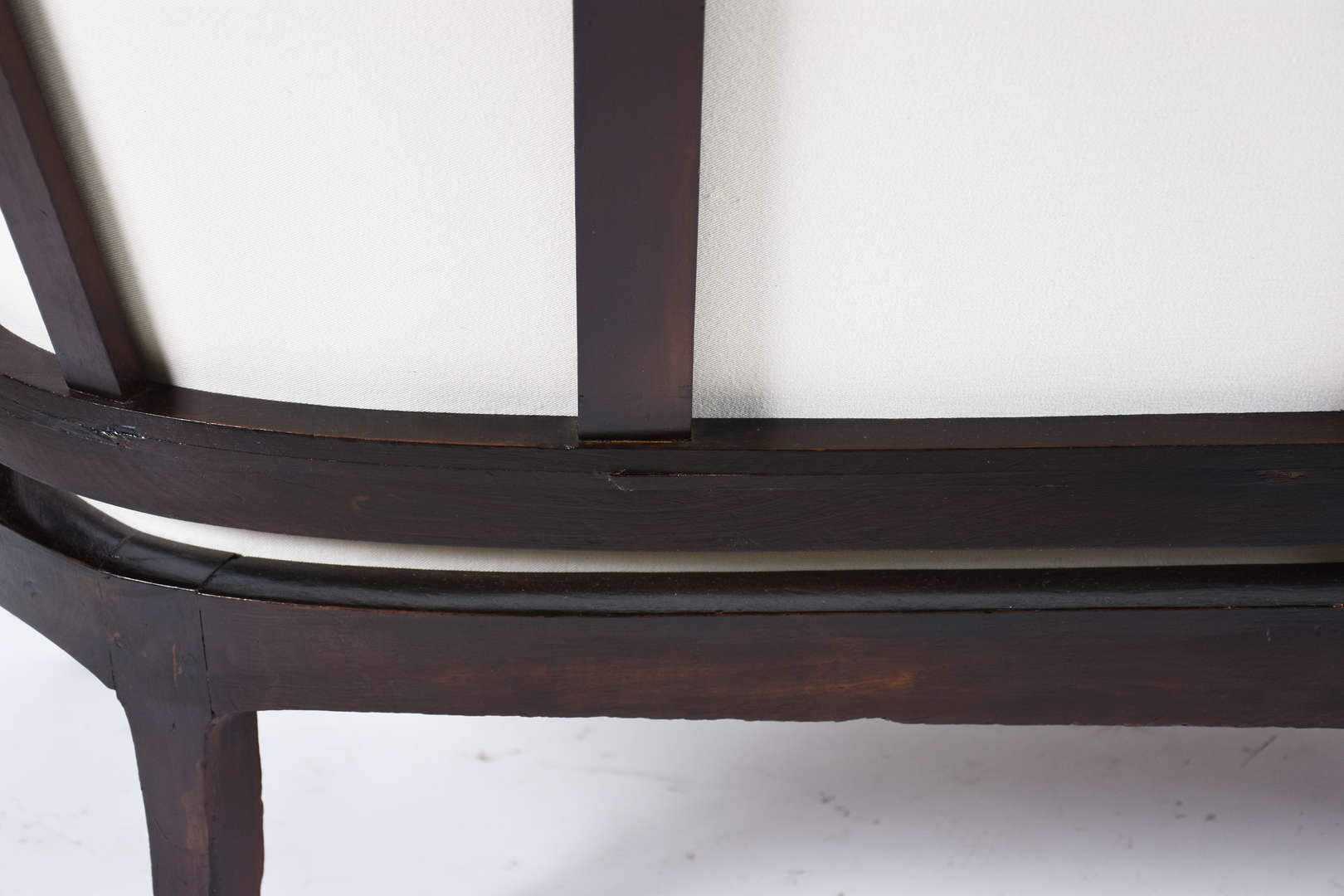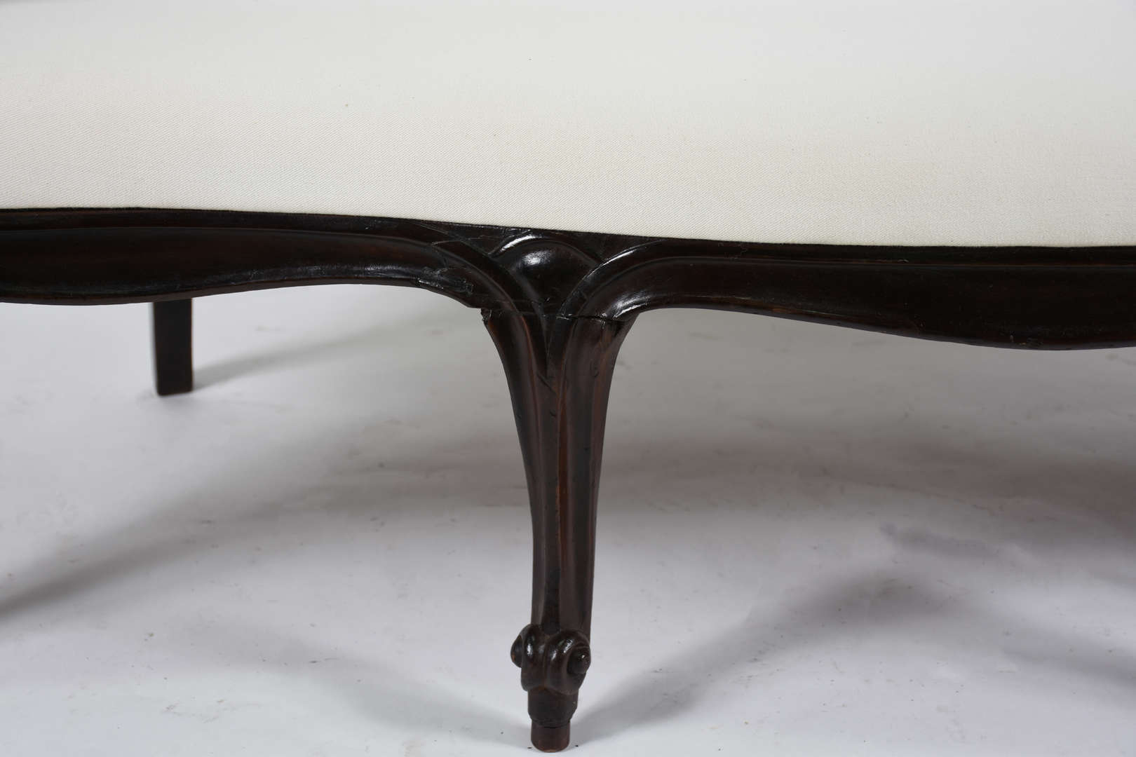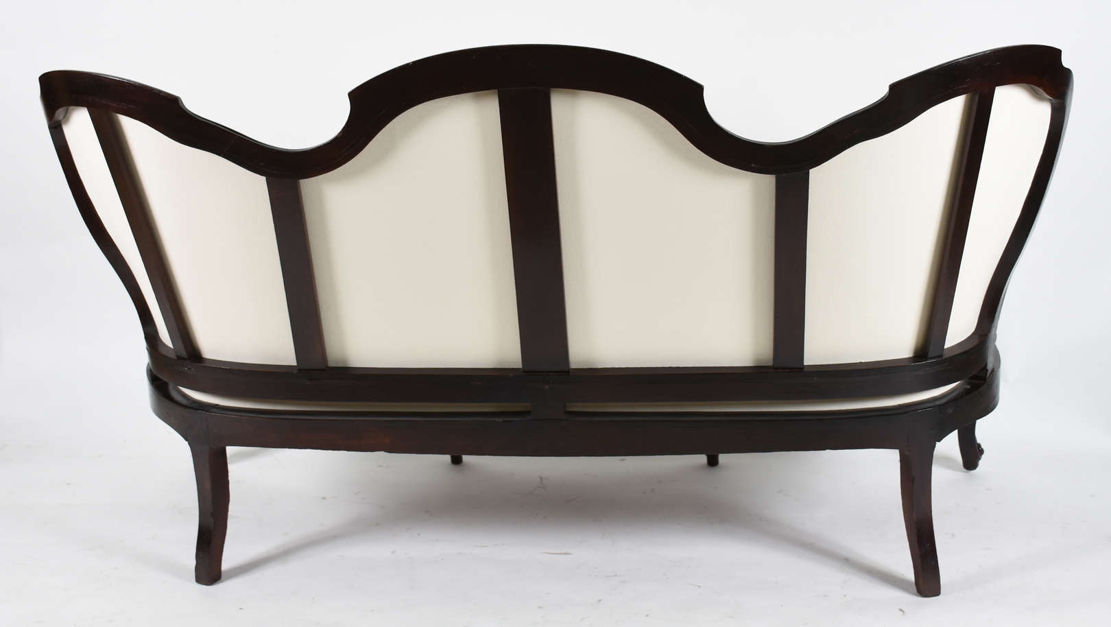 Canapé de madeira nobre estilo Luis XV, século XIX , estofamento forrado com tecido na cor branca .
