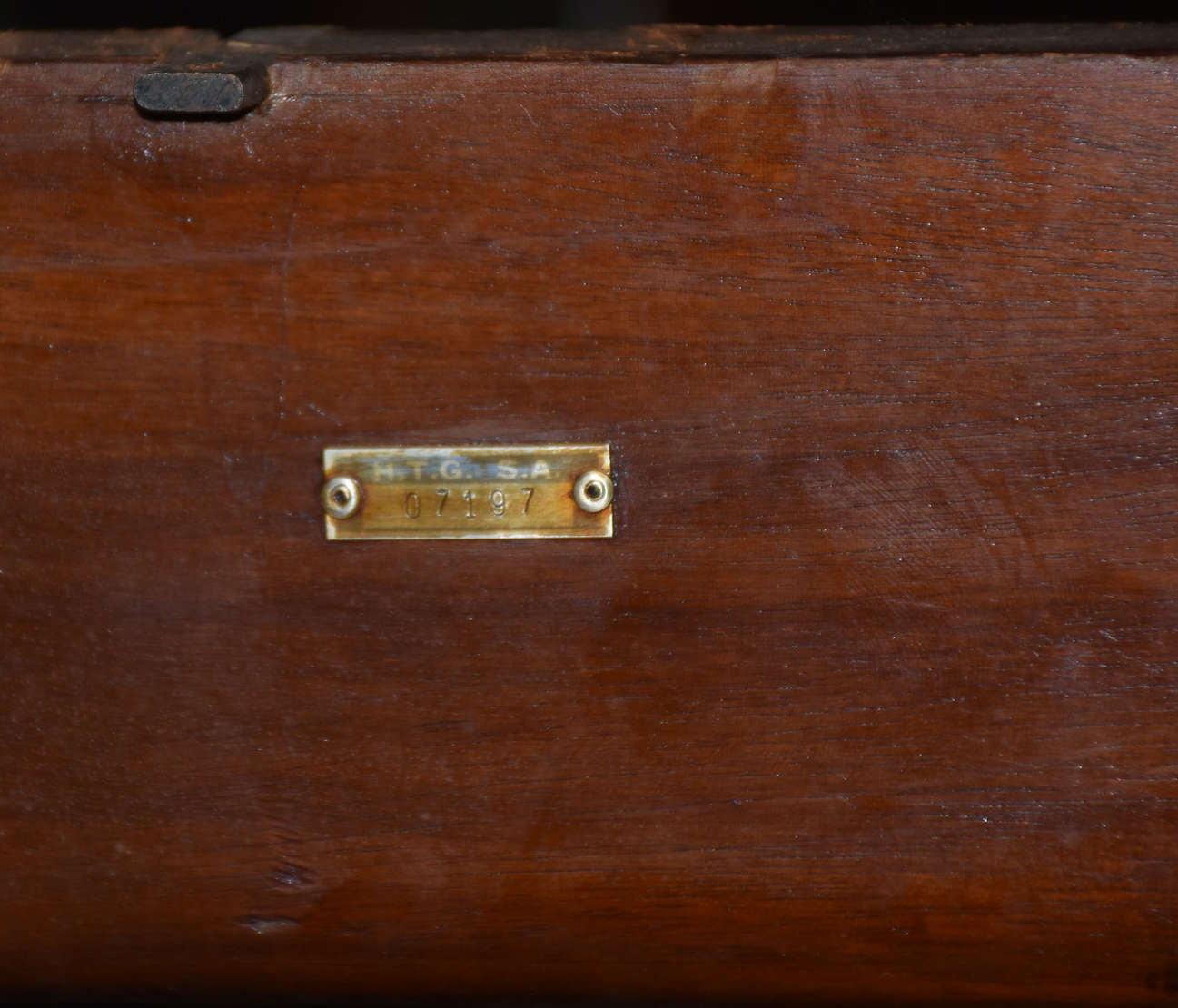 Mesa de apresentação em estilo Louis Philippe. Século XIX. Tampo embutido de mármore Carrara . A caixa, de movimentaç...
