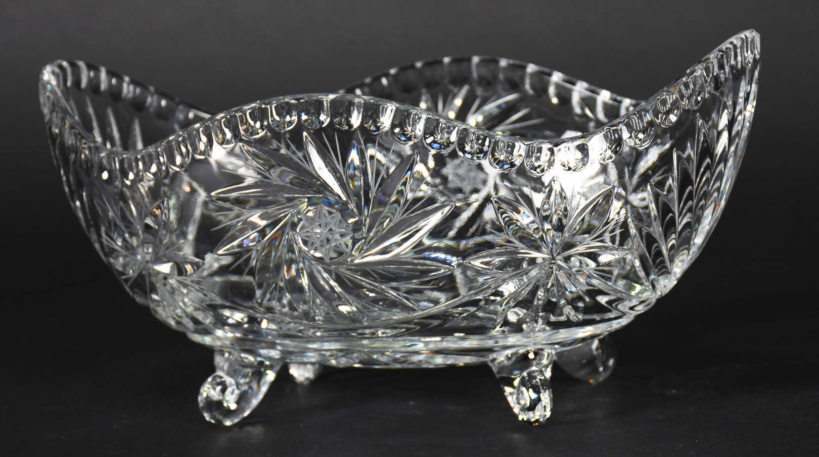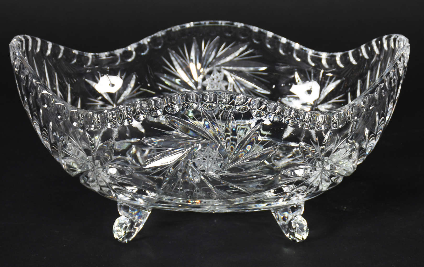 Duas peças de cristal, sendo: Fruteira e bomboniere com tampa lapidada.