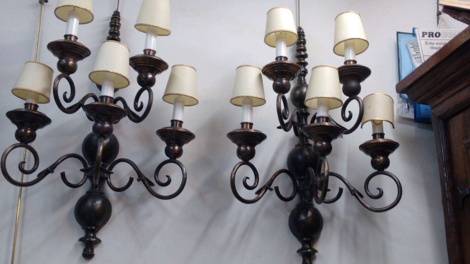 Par de apliques de metal dourado polido , Holandês para 5 lâmpadas cada. ( não acompanha cúpulas)