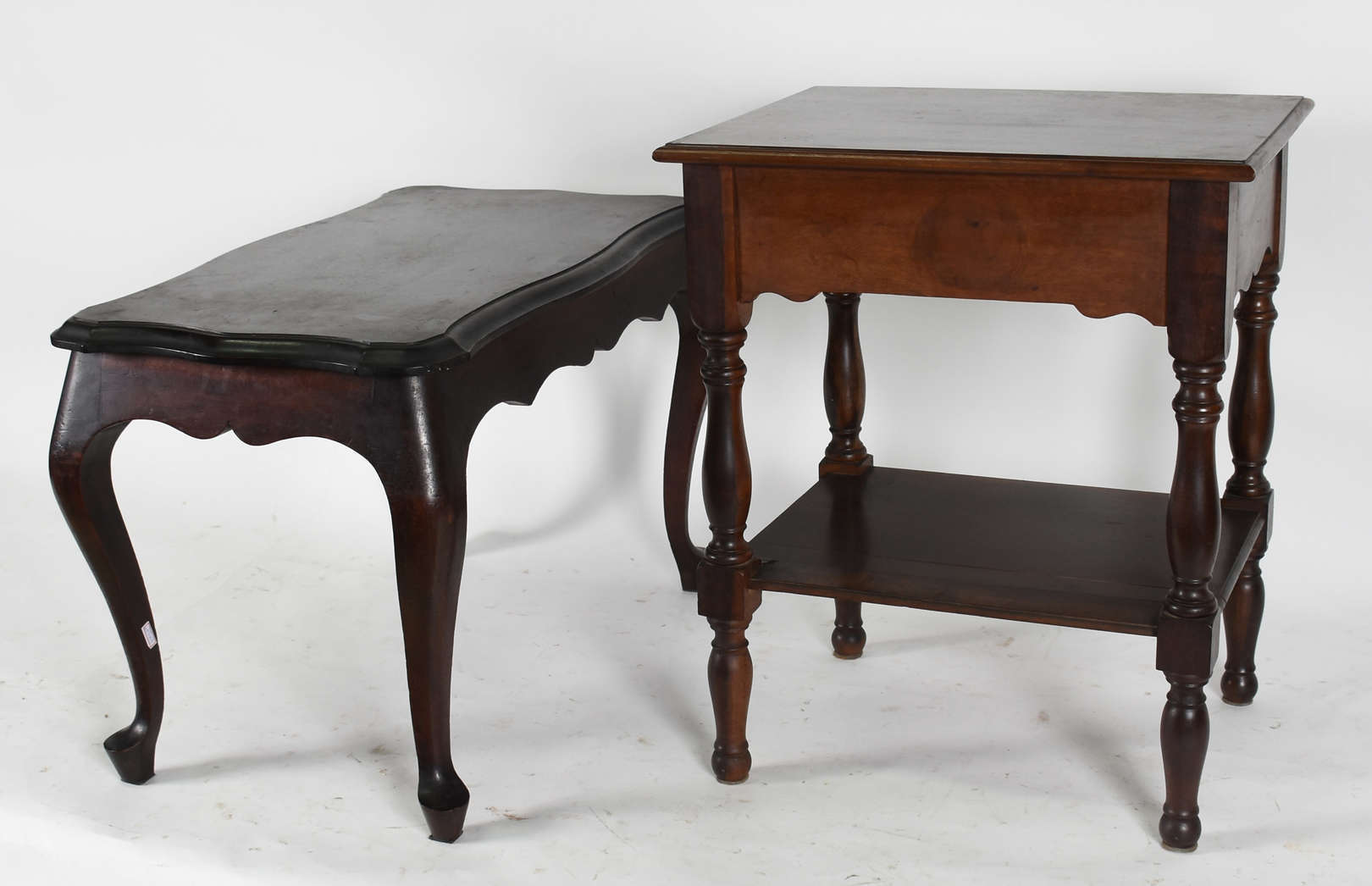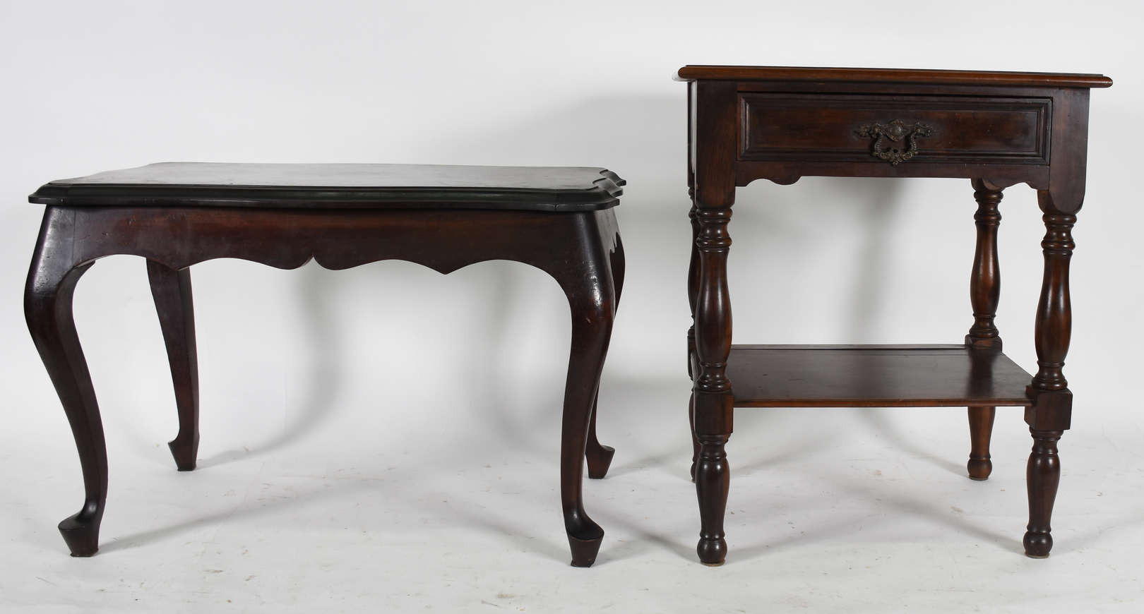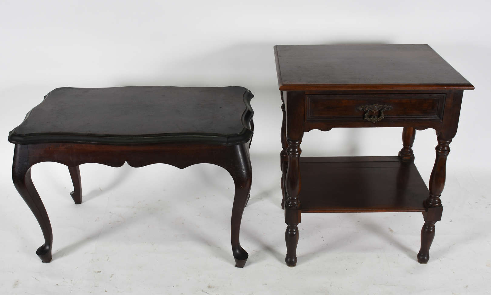 Tres pequenos moveis de madeira nobre, sendo: Mesinha com 2 gavetinhas e rodízios ; Mesinha com 4 gavetas filetadas ...