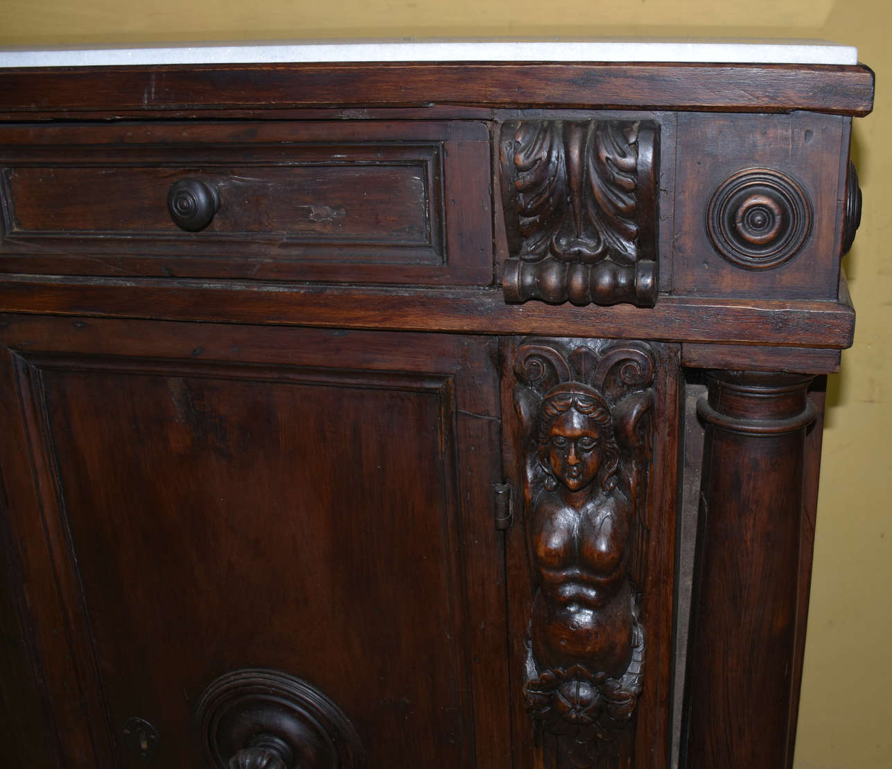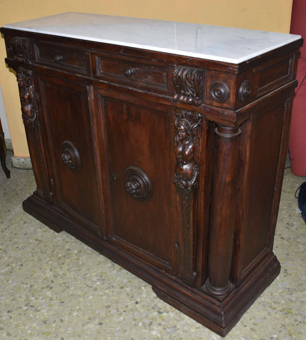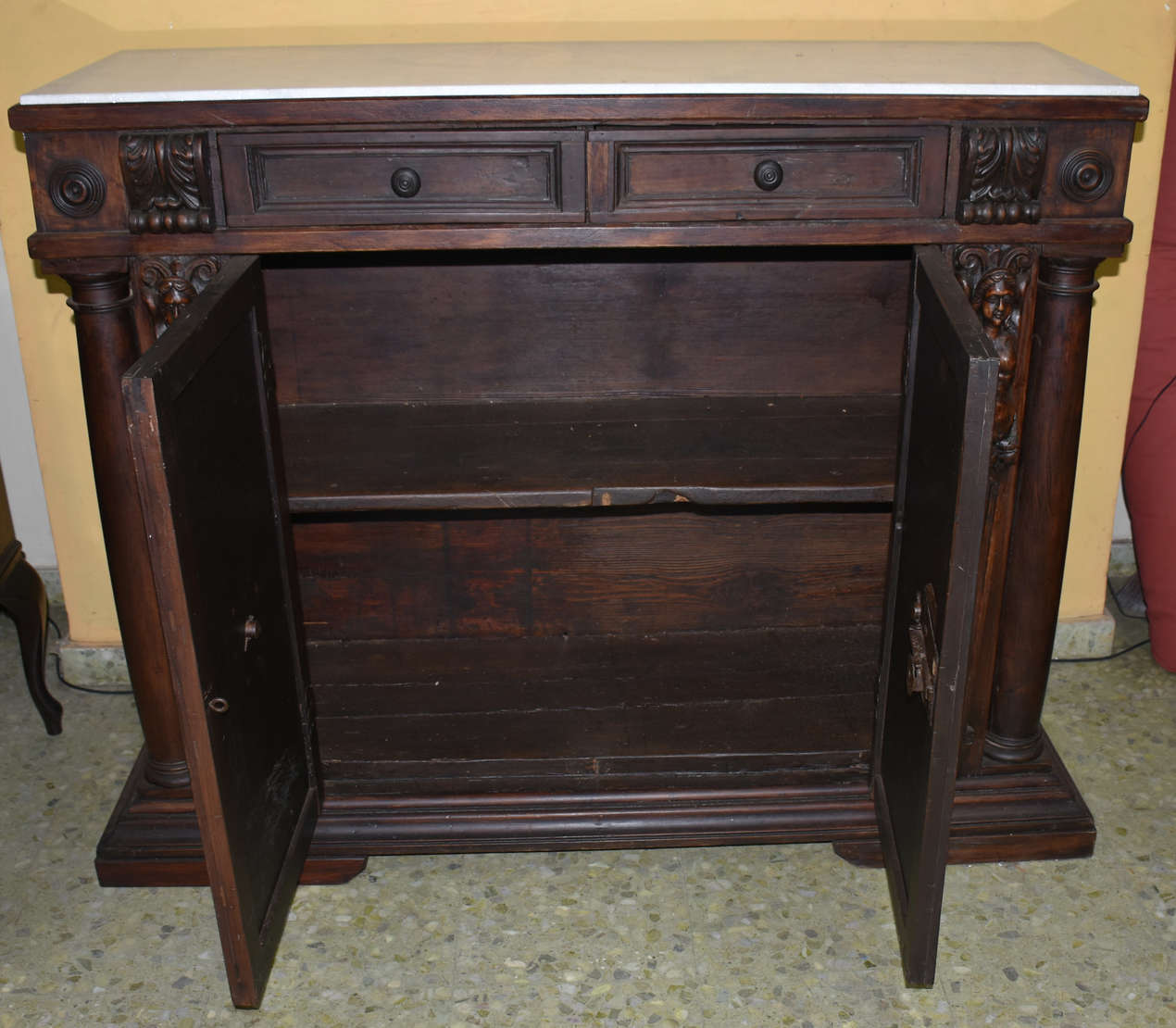 Mesa de jantar de jacarandá , apoio em duplo balaústre entalhado terminando em 3 pernas recurvas cada, trabalhos de e...
