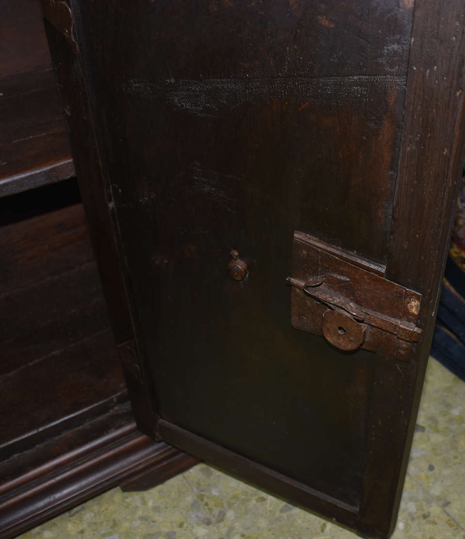 Duas peças diversas, sendo: Vitrine de parede e espelho oval com moldura de madeira com flores entalhadas..