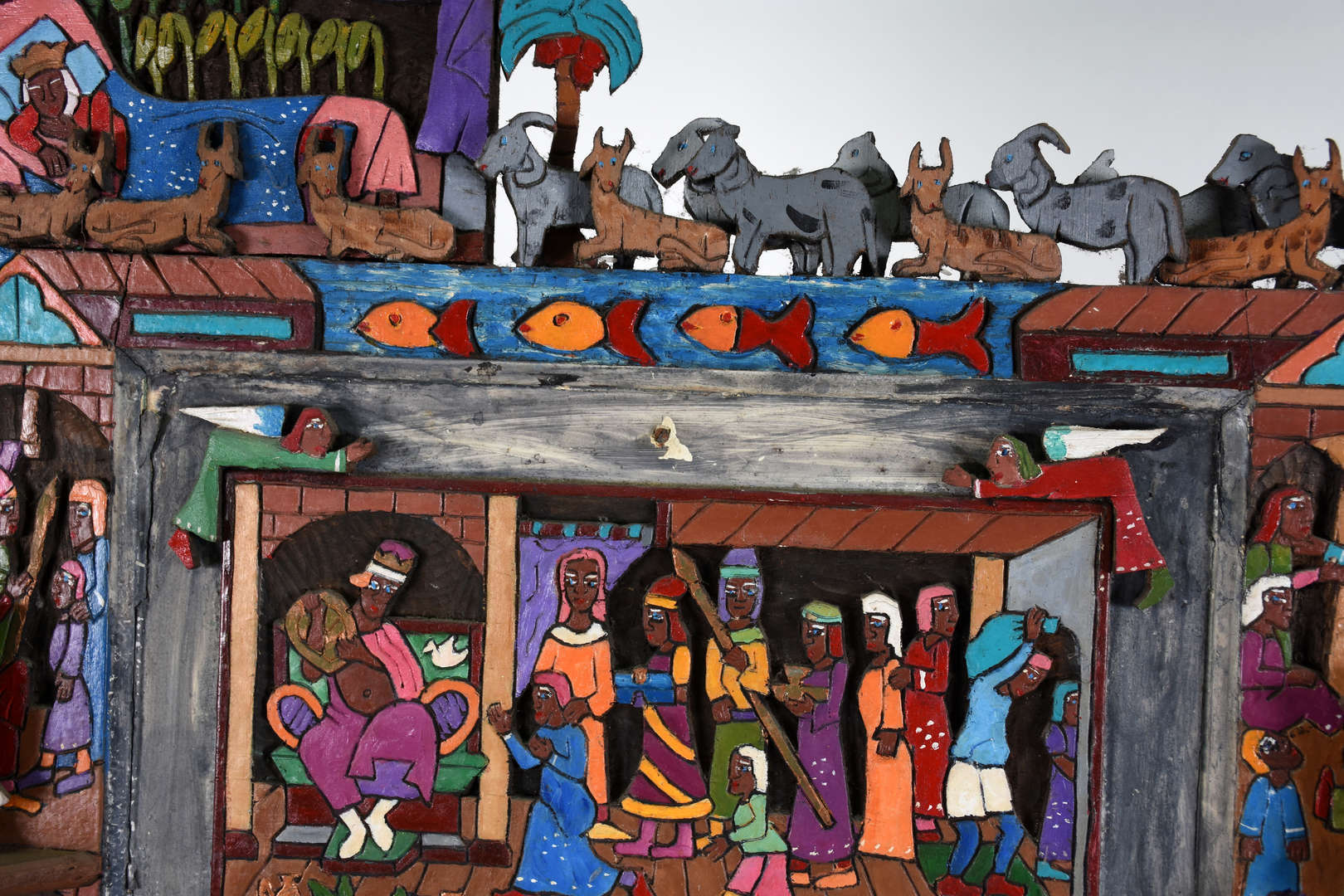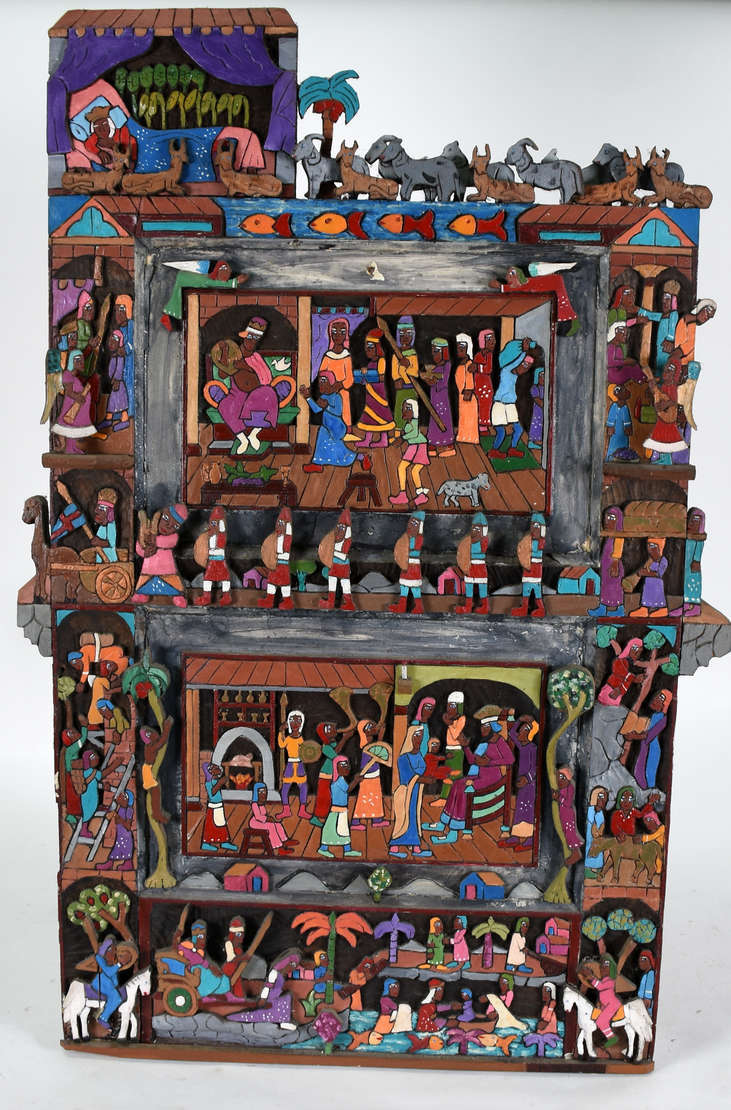 Grande Gaiola de metal com folhas em policromia.