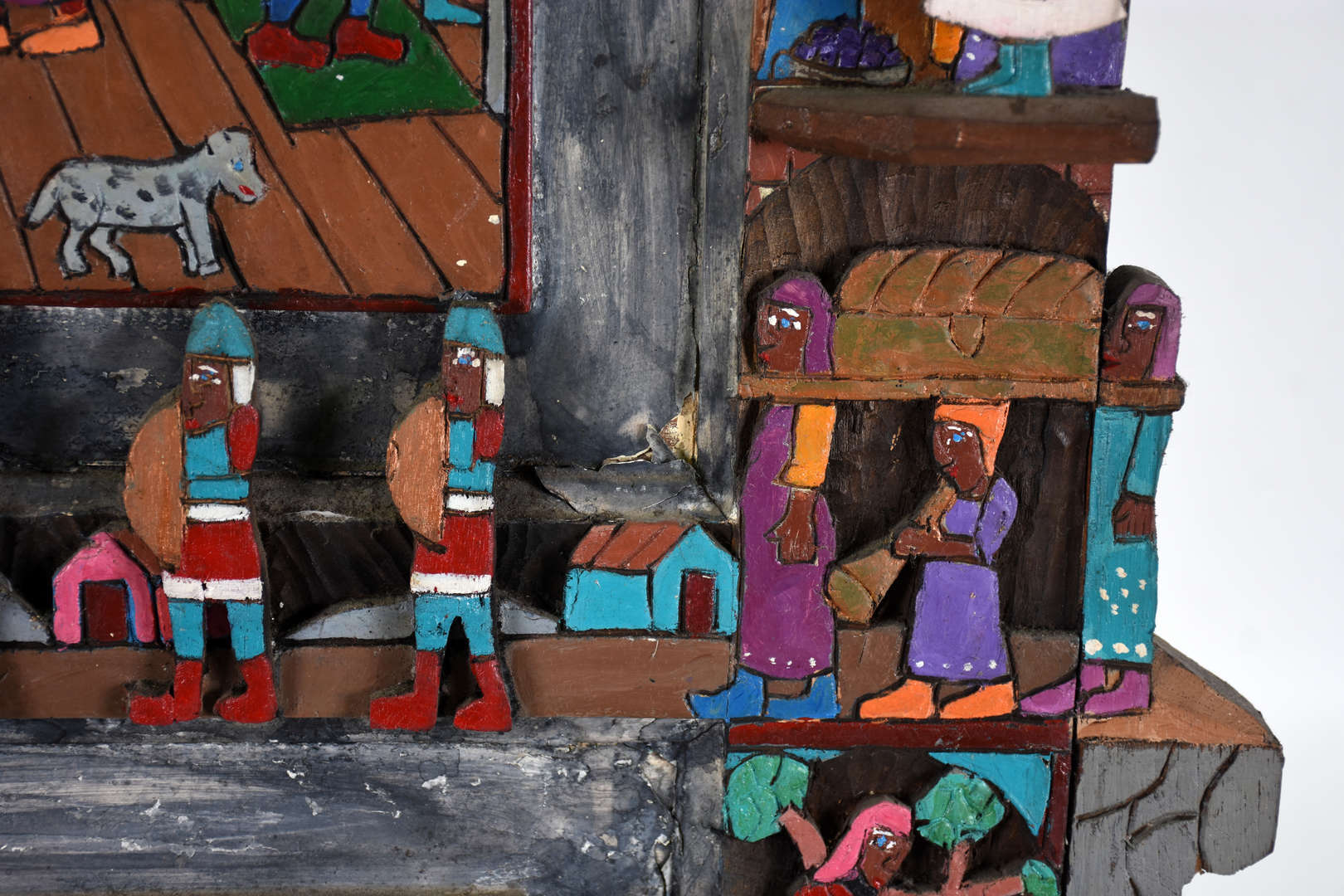 Duas peças de madeira, sendo ; Cristo estilizado , assinado, (braço colado) e relógio rústico a pilha.