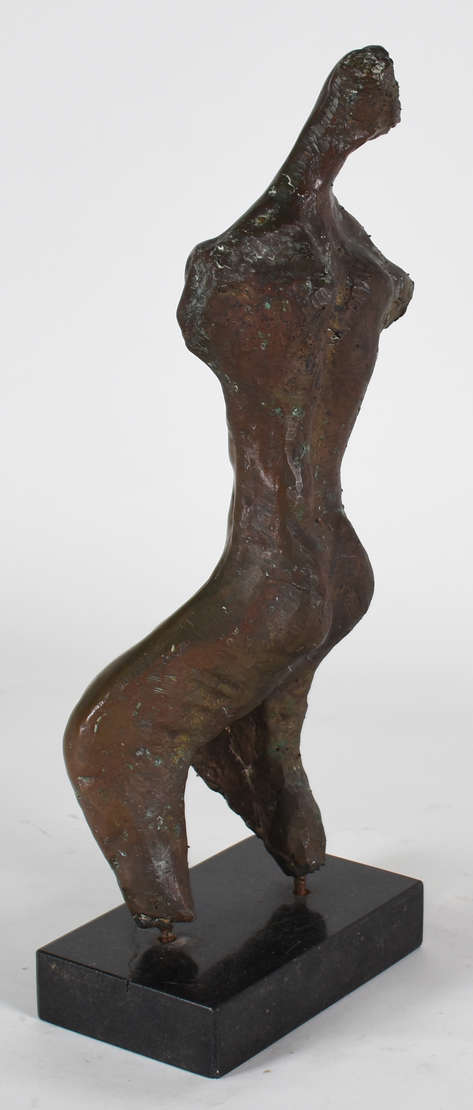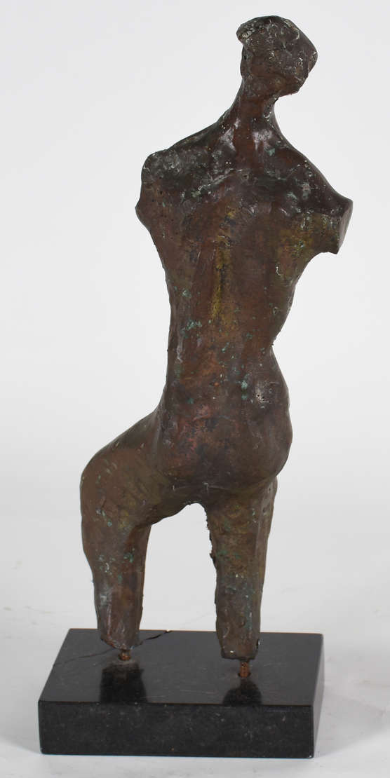 Escultura de bronze representando " frei com figura feminina" .Assinada .