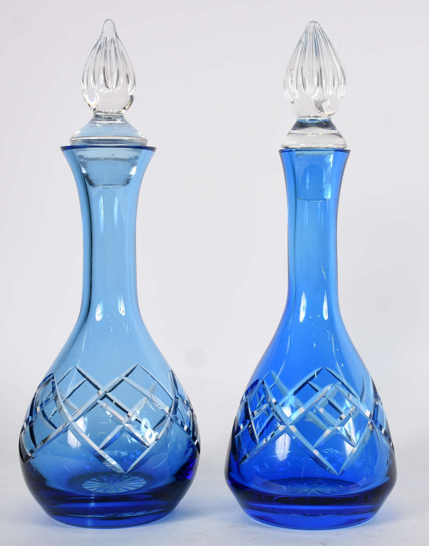 Par de galhetas de cristal ,lapidação tijolinho e bocal de prata contrastada 800 mls