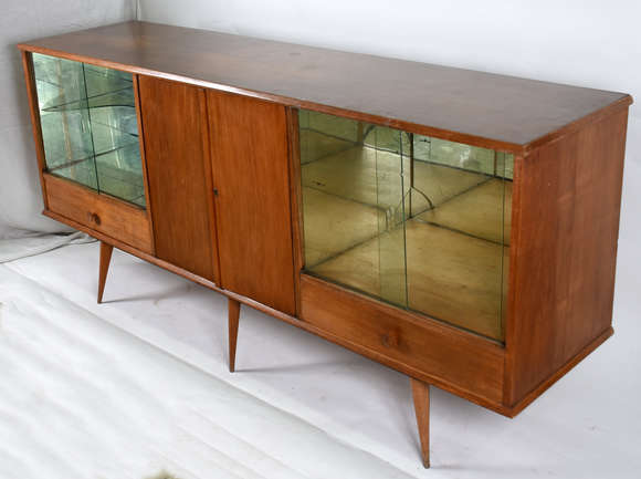 Vitrine de madeira nobre com 2 portas de correr de vidro