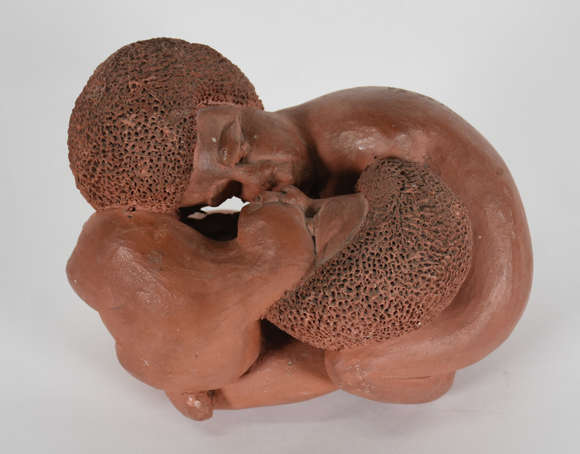 Escultura de cerâmica representando casal.