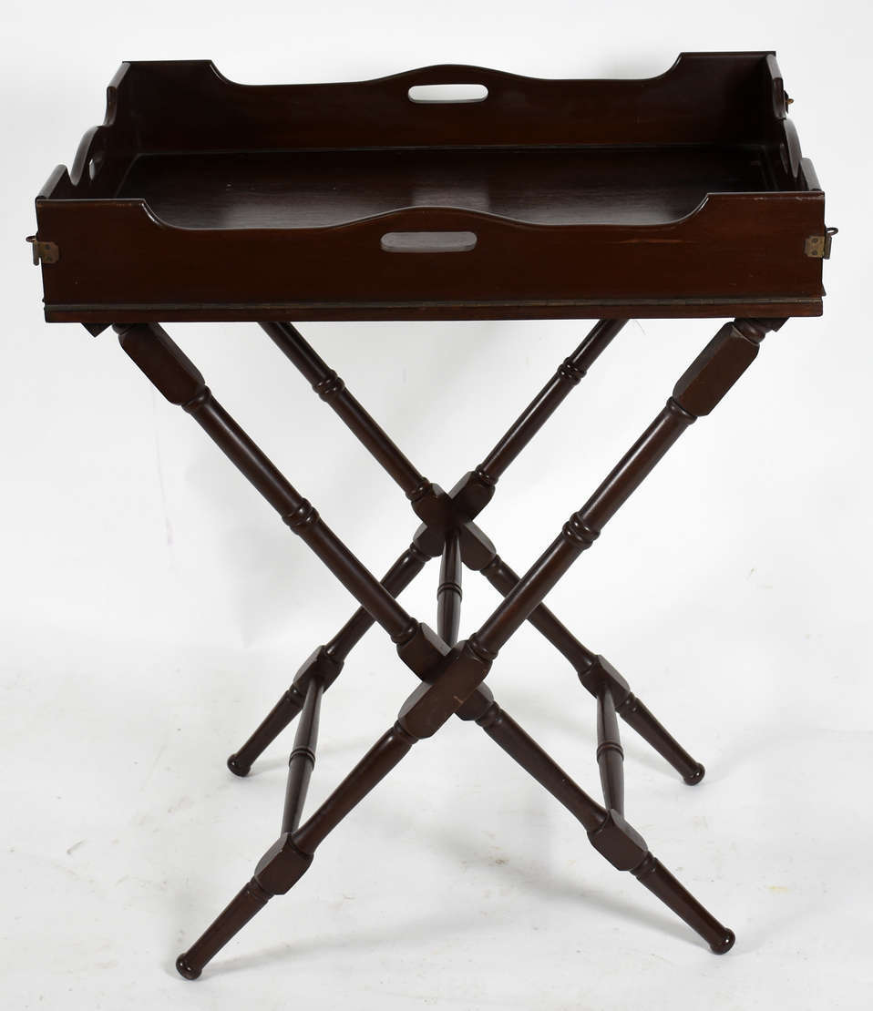 Duas peças, sendo: Gueridon redondo de madeira nobre, base tripé e, banco alto para bar com assento e encosto estofad...