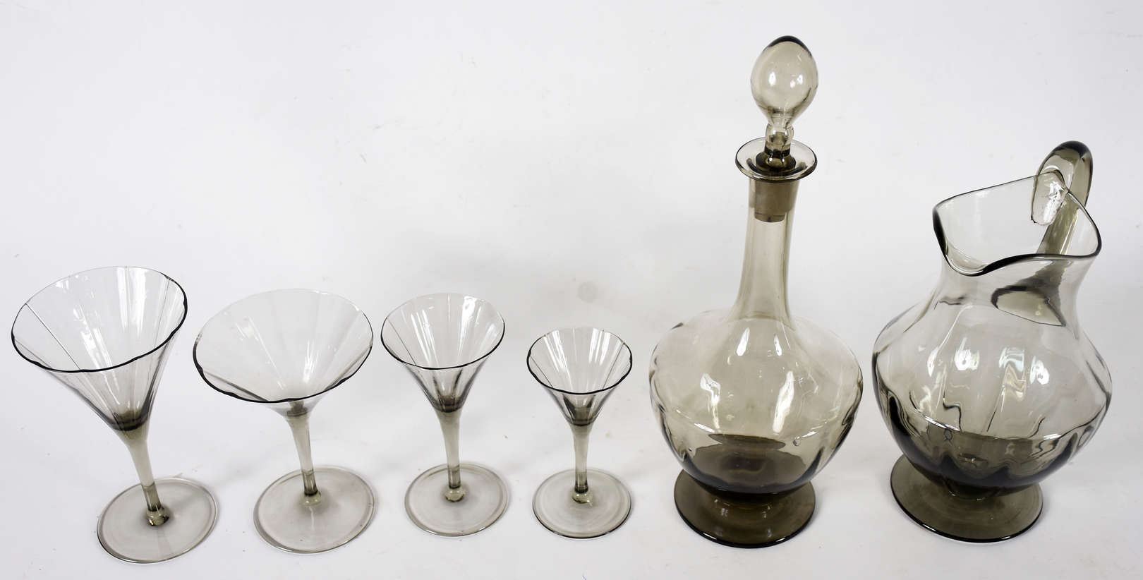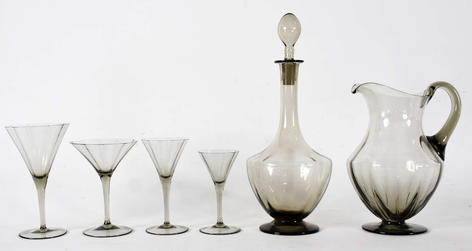 Garrafa de cristal double lapidada na cor âmbar , acompanha 5 cálices .( Tampa com pequeno lascado )