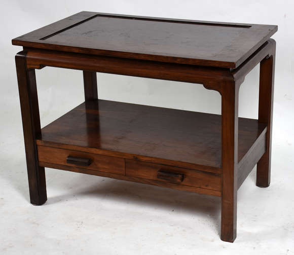 Mesa lateral de madeira nobre, platô inferior com 2 gavetas.