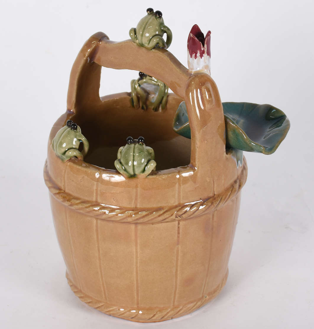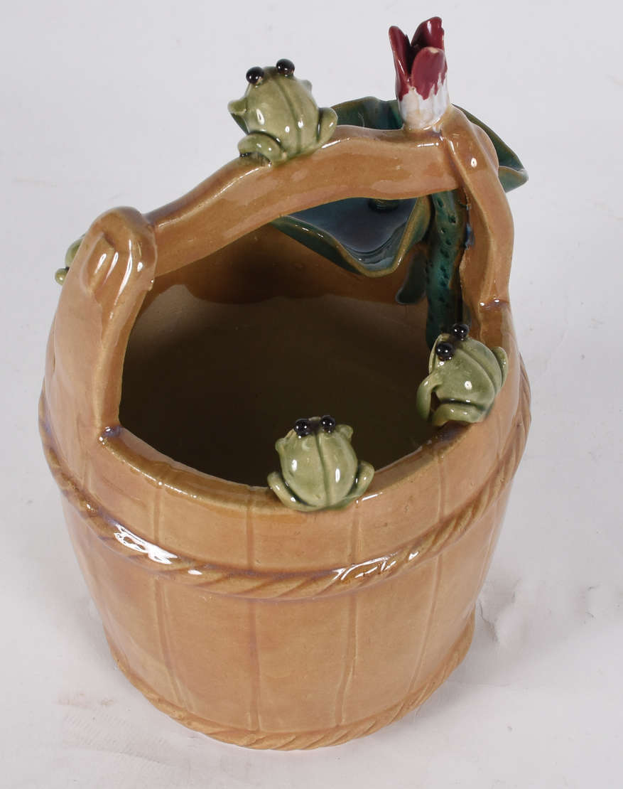 Porta petiscos com base de madeira e potes de cerâmica.( 1 deles com borda colada).