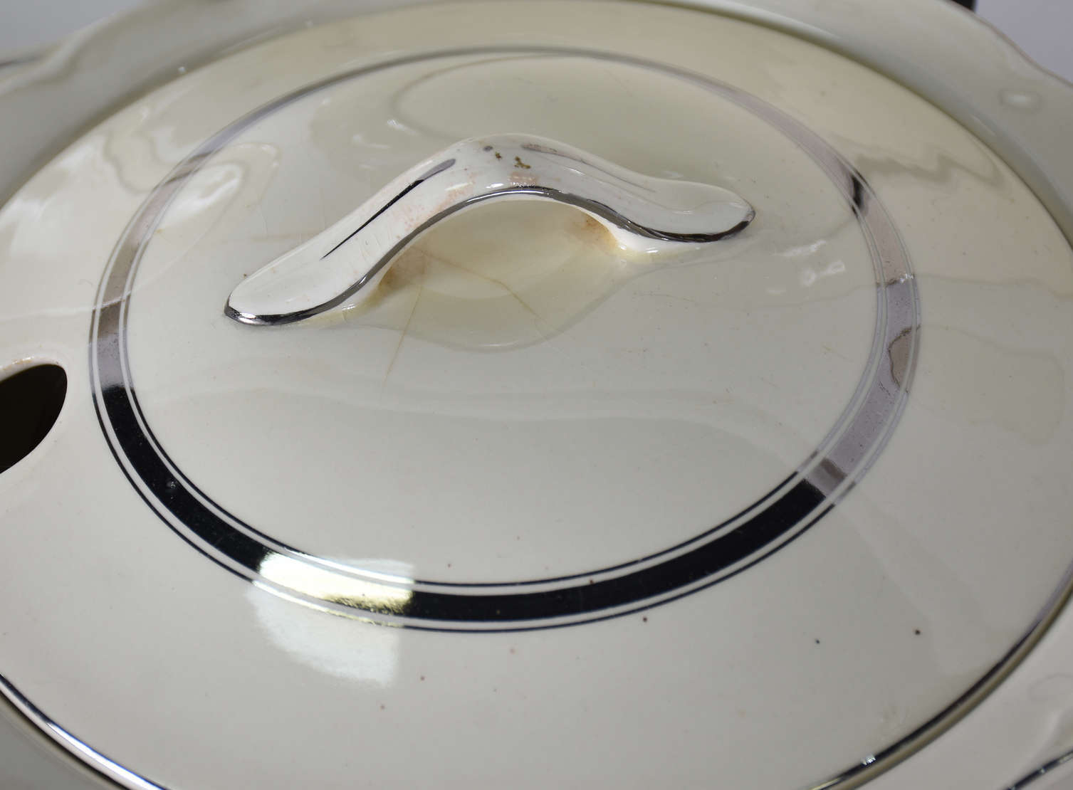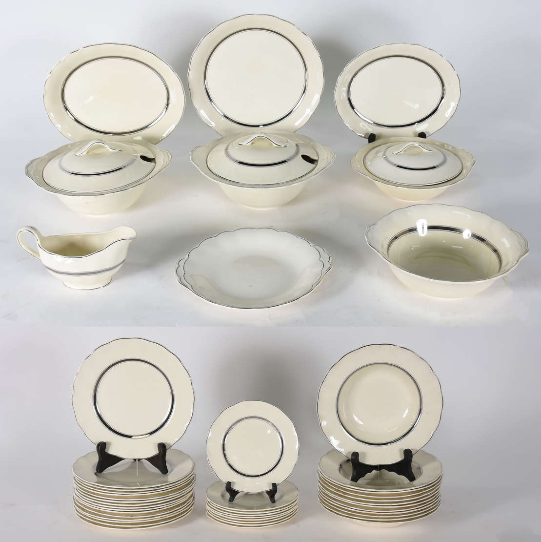 Aparelho de jantar porcelana Steatita , composto de 12 pratos rasos , 12 fundos , 7 sobremesa , sopeira , 2 travessas...