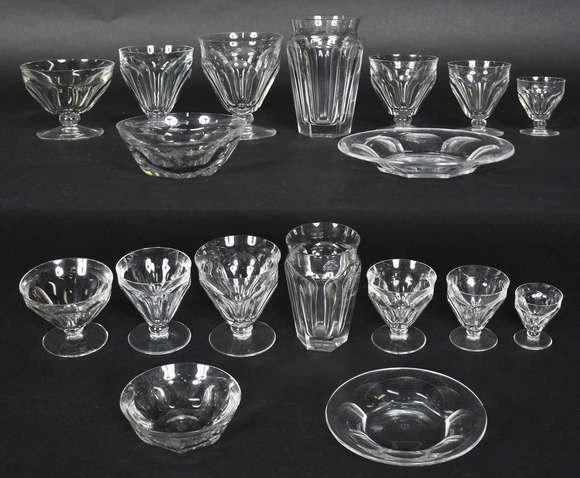 BACCARAT - Serviço de cristal frances, lapidação "HARCOURT", assinados na base, composto de 105 peças, sendo: 15 taça...