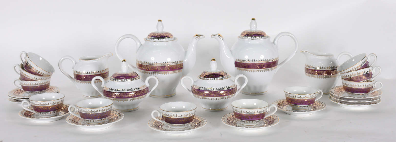 Serviço de chá de porcelana Inglesa sendo , 14 xícaras com pires , 12 pratos sobremesa , 2 bules, leiteira , açucarei...