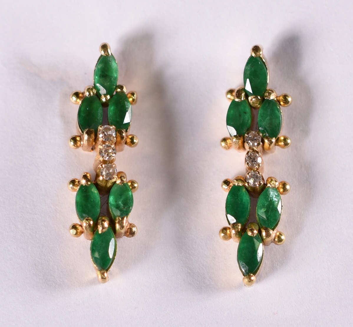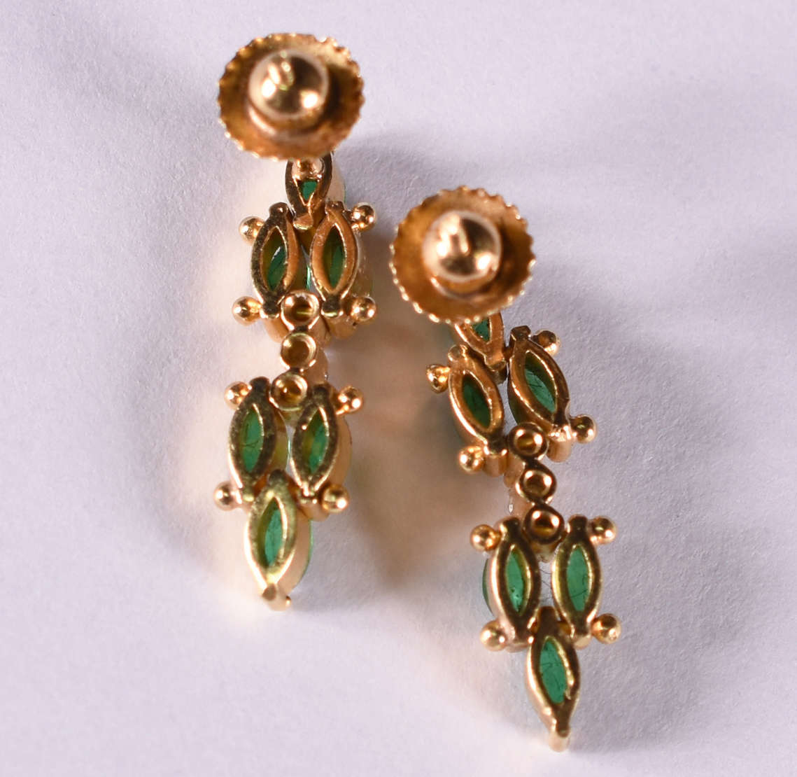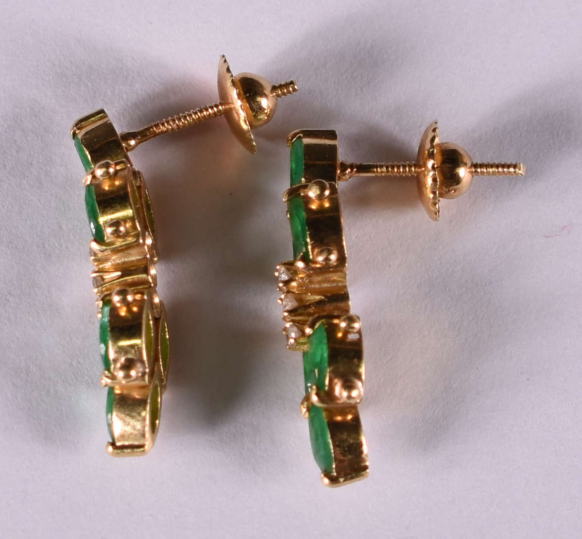 Par de brincos de ouro amarelo com 2 esmeraldas. ( Por questão de segurança a peça não se encontra na loja)