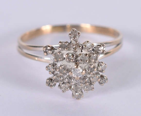 Anel de ouro branco tipo chuveiro com 27 brilhantes. total 0.80 ct aro 11 ( Por questão de segurança a peça não se e...