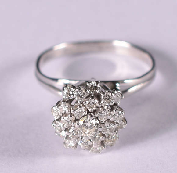Anel de ouro branco tipo chuveiro com 27 brilhantes. total 0.80 ct aro 11 ( Por questão de segurança a peça não se e...