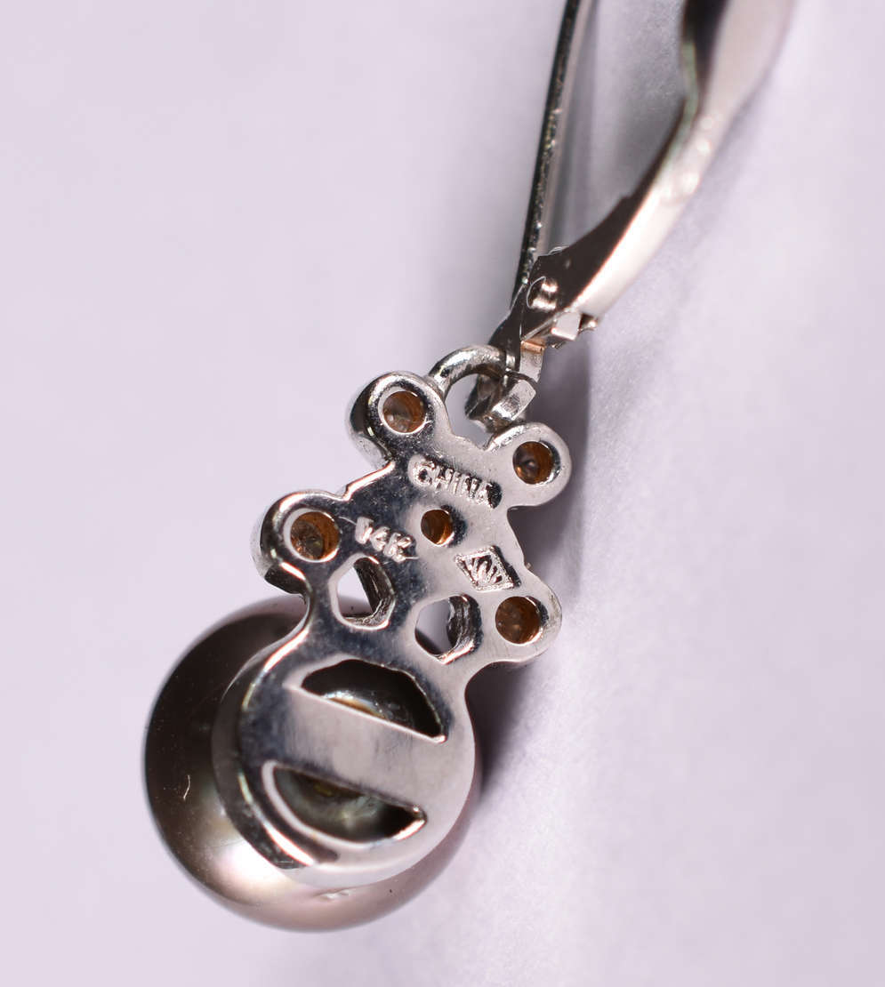 Par de brincos de ouro amarelo com 4 brilhantes e 2 pérolas ( Por questão de segurança a peça não se encontra na loja)