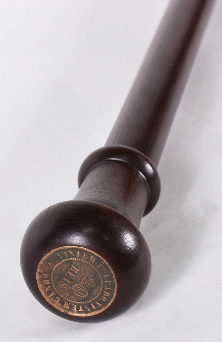 Coluna de mármore com corpo cilíndrico, tampo e base quadradas, guarnições de bronze.