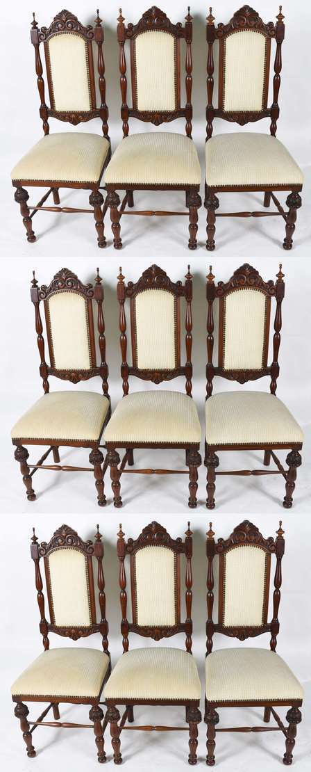 Par de mochos de madeira nobre, estilo Dom José, tampo de couro (uma dos tampos com rasgo no couro).