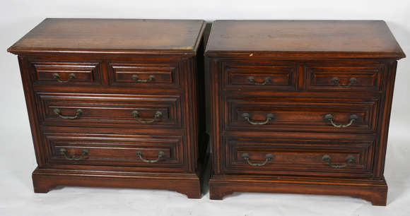 Par de mesas / cômoda de madeira com 4 gavetas cada( 1 com defeito no tampo)