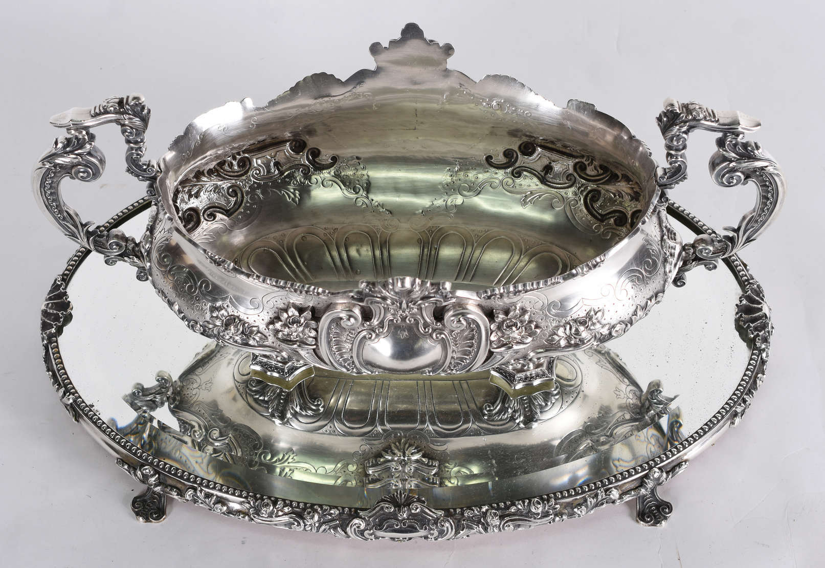 Espelho com moldura em madeira trabalhada .