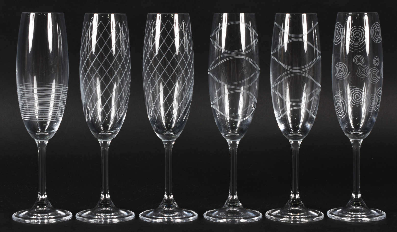 Seis flutes de cristal da bohemia 210 ml desenhada