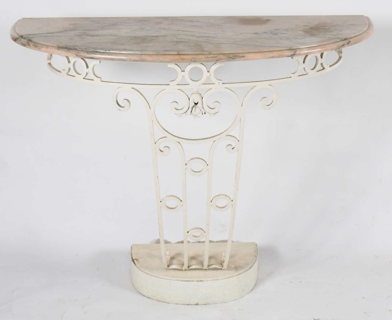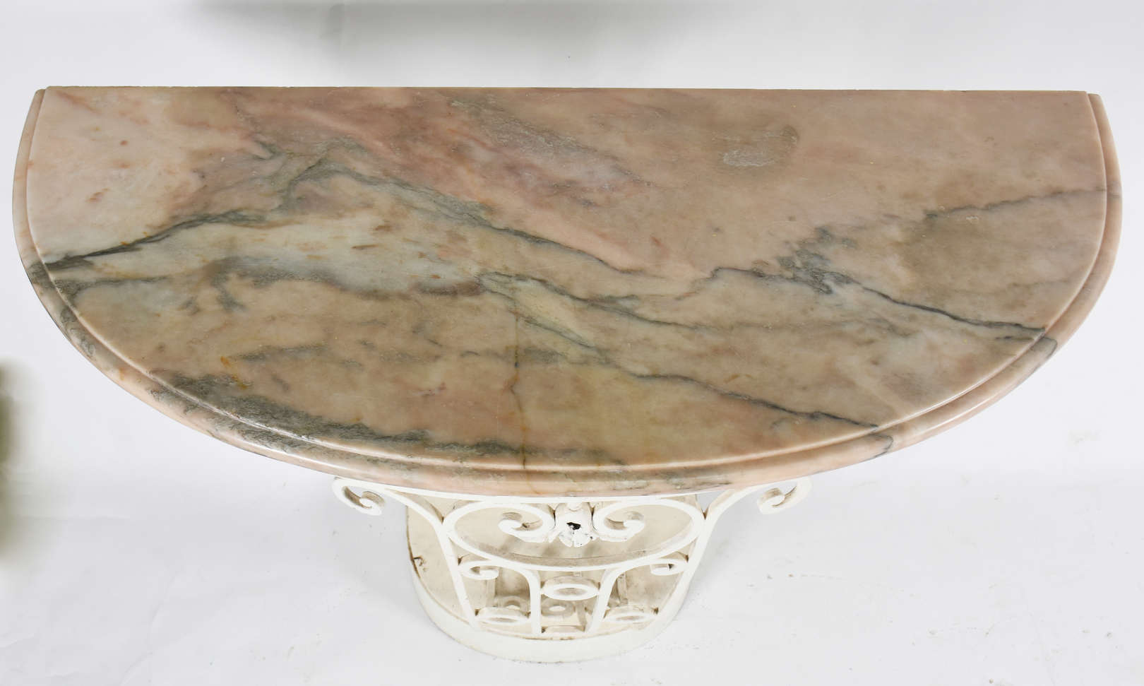 Mesa de madeira com tampo de mármore e 2 gavetas .