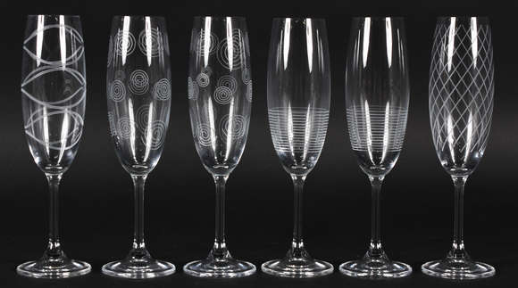 Seis flutes de cristal da bohemia 210 ml desenhada